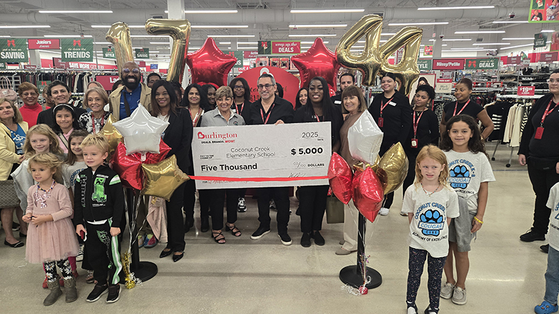 City officials and Burlington executives attended the opening. Burlington donated $5,000 to Coconut Creek K-8 Academy of Excellence, and teachers and students from the school participated in the celebration.