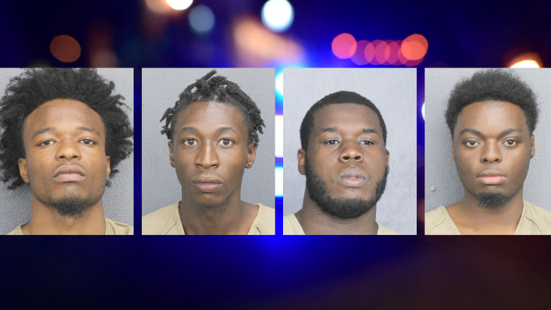 All four men were arrested and charged with grand theft and resisting an officer without violence. They were transported to the Broward County Main Jail.