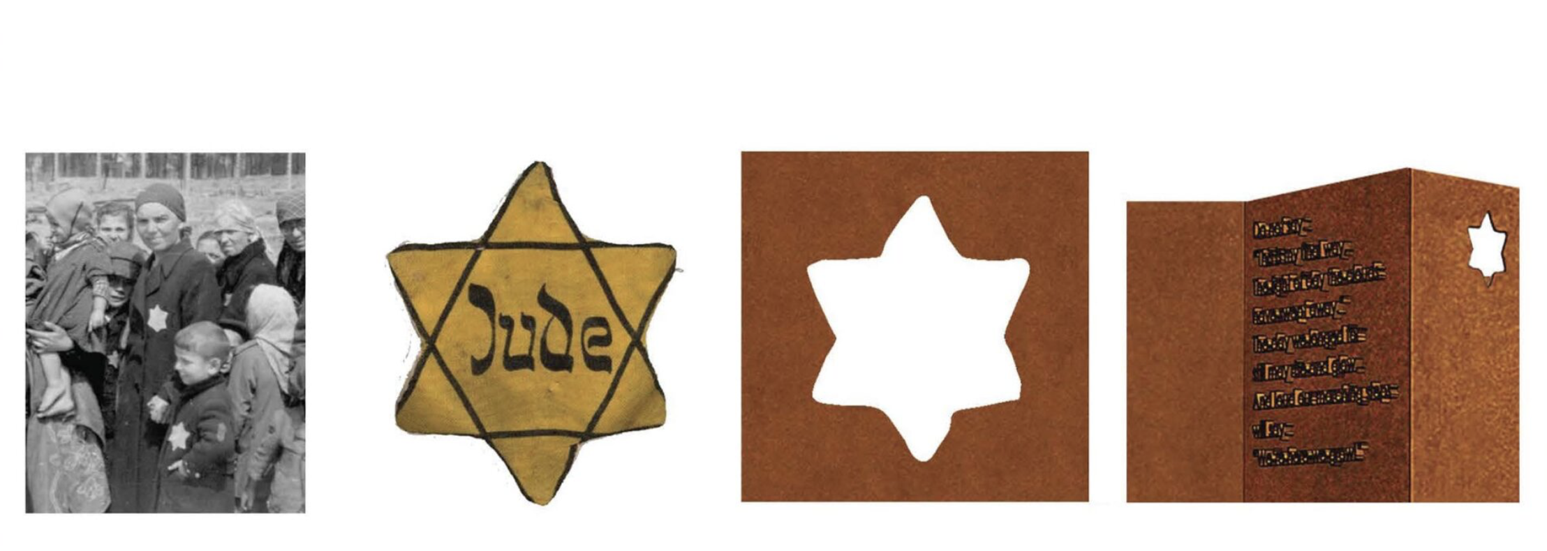Among the monument’s most powerful details is a Star of David, shaped like the soft cloth stars Jews were forced to wear in ghettos.