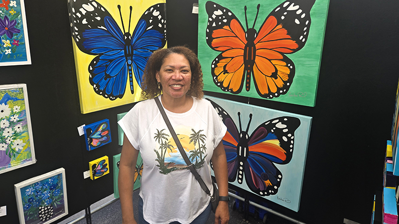 Geilsa Rosinha an artist who loves to paint butterflies at the Prominade art and craft show. {David Volz}