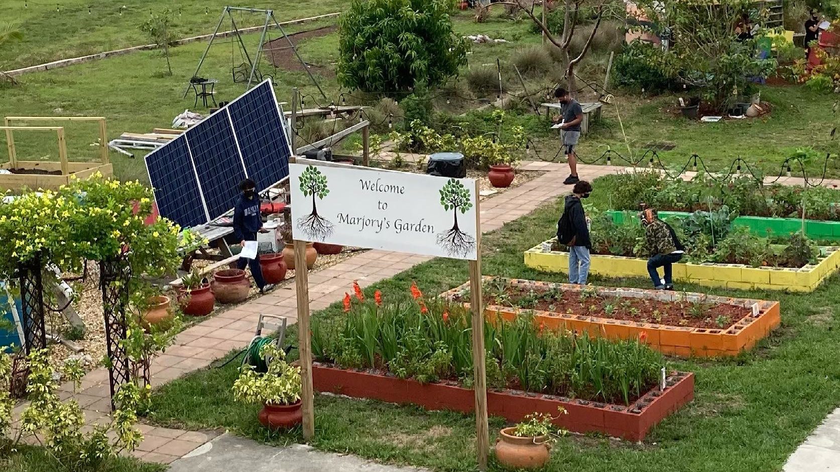 At 14,000 square feet, Marjory’s Garden is a community garden and green space located at Marjory Stoneman Douglas High School.
