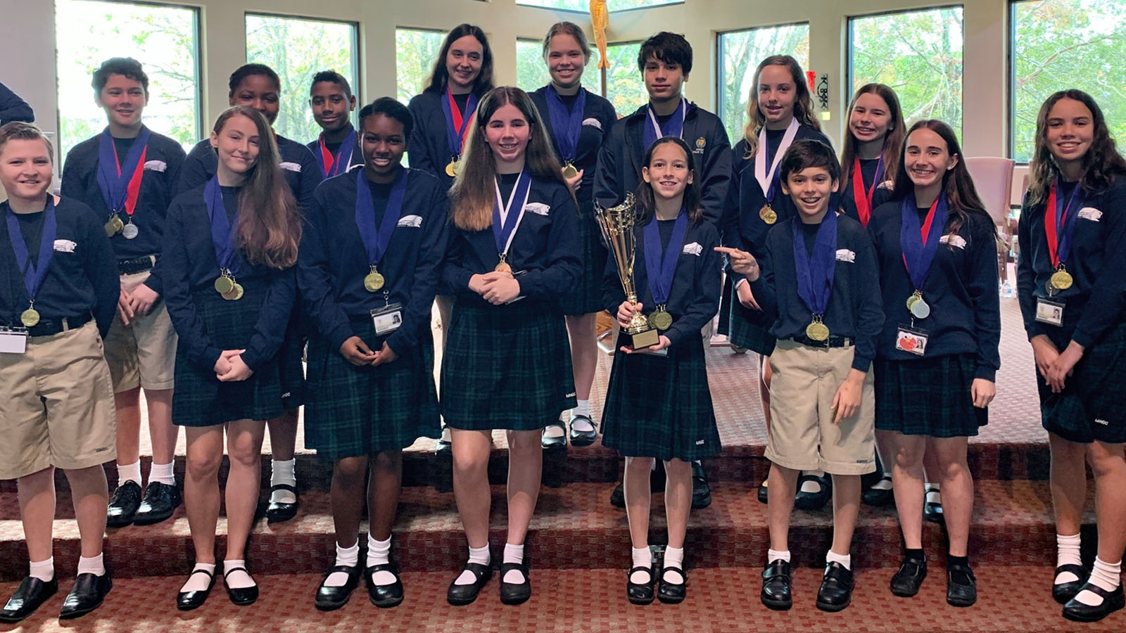 The middle school students at Mary Help of Christians earned first place at the Regional Science Olympiad Competition held at the University of Miami on January 18.