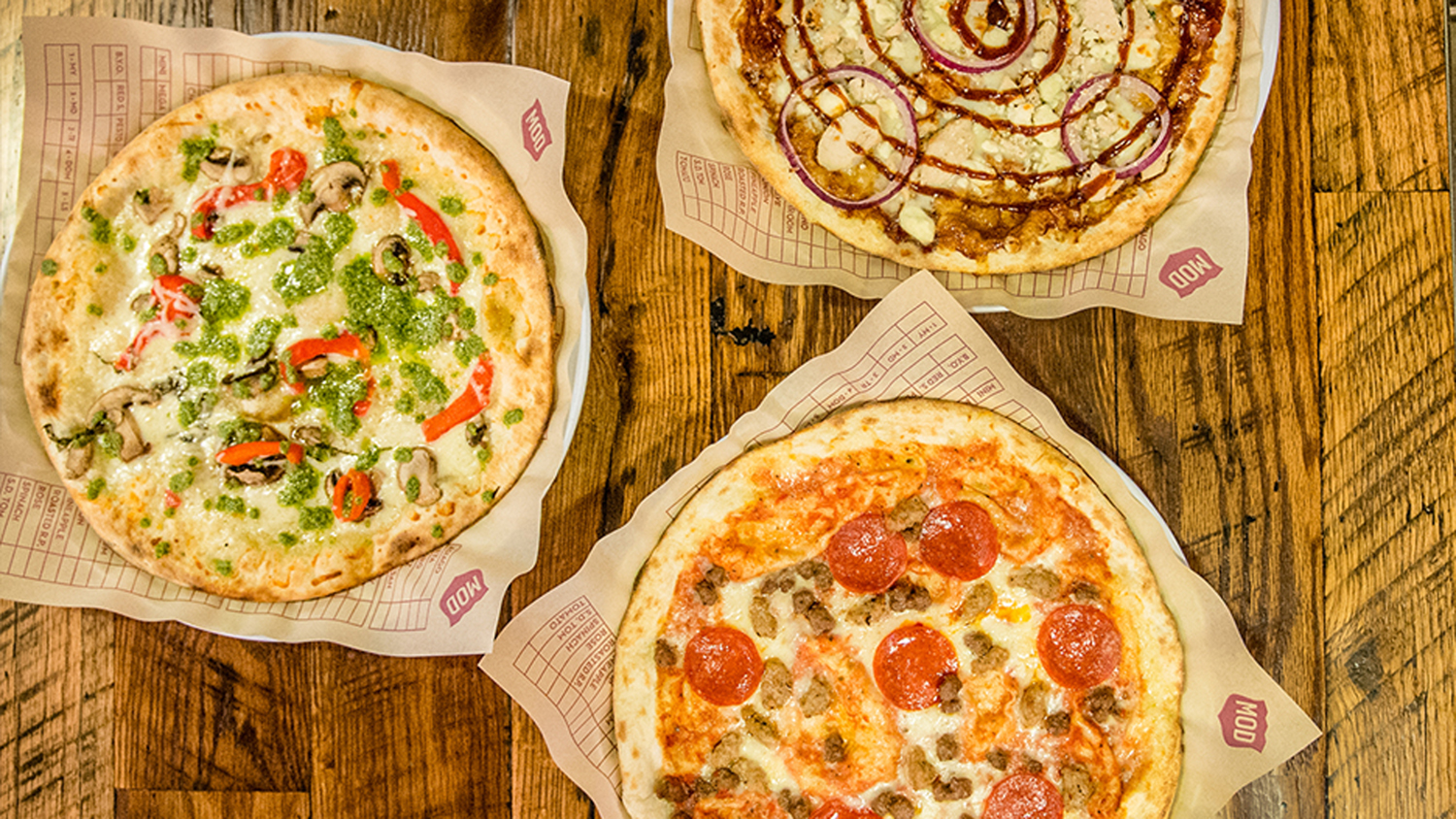 MOD Pizza features individual, artisan-style pizza made on-demand in minutes using fresh pressed dough and signature sauces hand-cooked in an 800-degree oven in just minutes. Salads are individually hand-tossed for each customer, and the restaurant serves up hand spun milkshakes, house-made lemonades and iced teas, and local craft beers and wine.