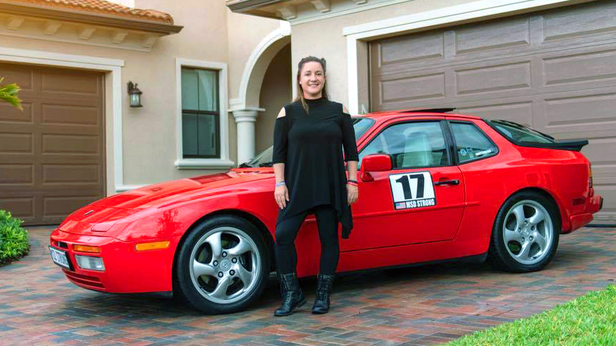 Parkland mom Lori Alhadeff stands in front of the Porche her next door neighbors are auctioning for Make Schools Safe.