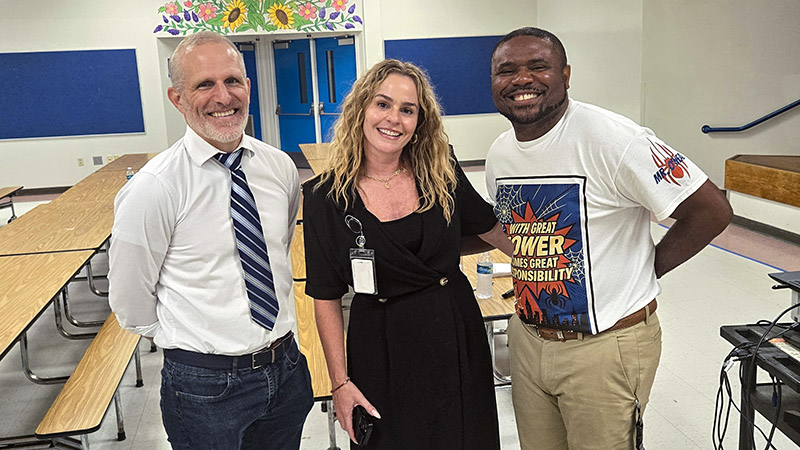 Winston Park Elementary assistant principal Mark Andriesse, North Regional director of the teaching and learning Melissa Gurreonero and new Winston Park Elementary School principal Devon O’Neal. {David Volz}